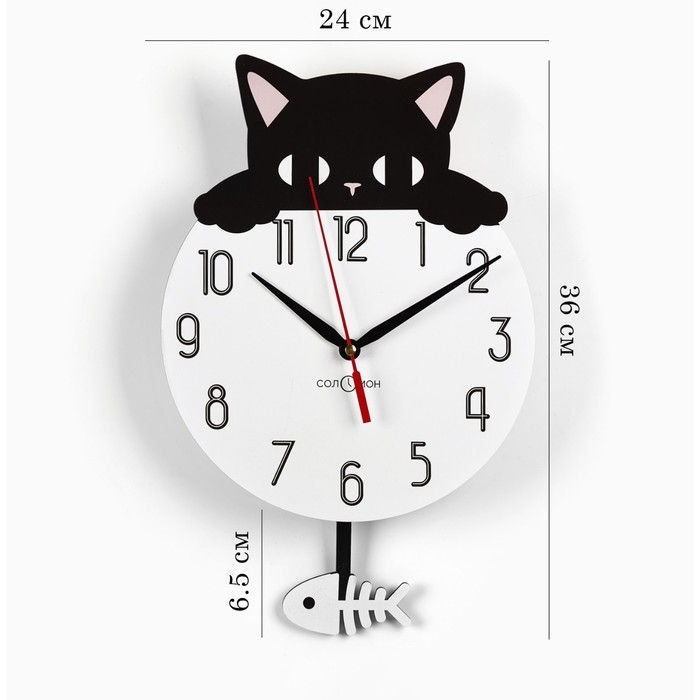 Часы настенные детские "Черный кот", с маятником, 36 х 24 см
