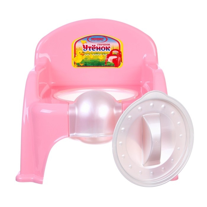 Горшок детский «Утенок» с крышкой, светло-розовый / белый 310х295х280мм