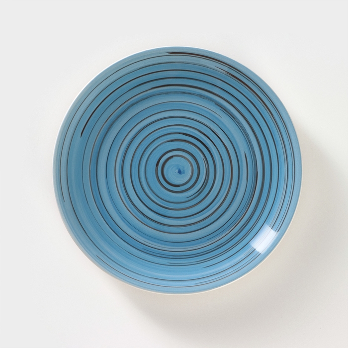 Тарелка Риштанская Керамика "Узоры", синяя, глубокая, микс, 20 см