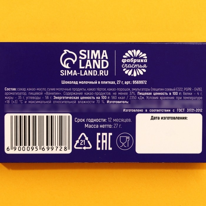 Шоколад молочный «От офисных страданий»: 27 г.