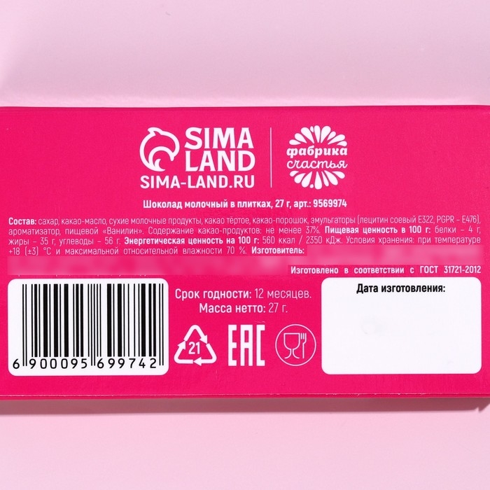 Шоколад молочный «Муж купил» , 27 г.