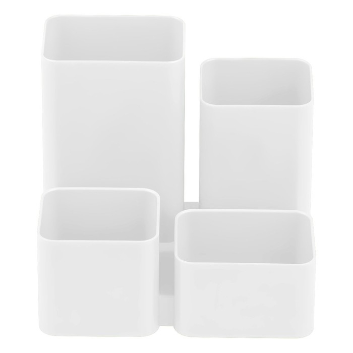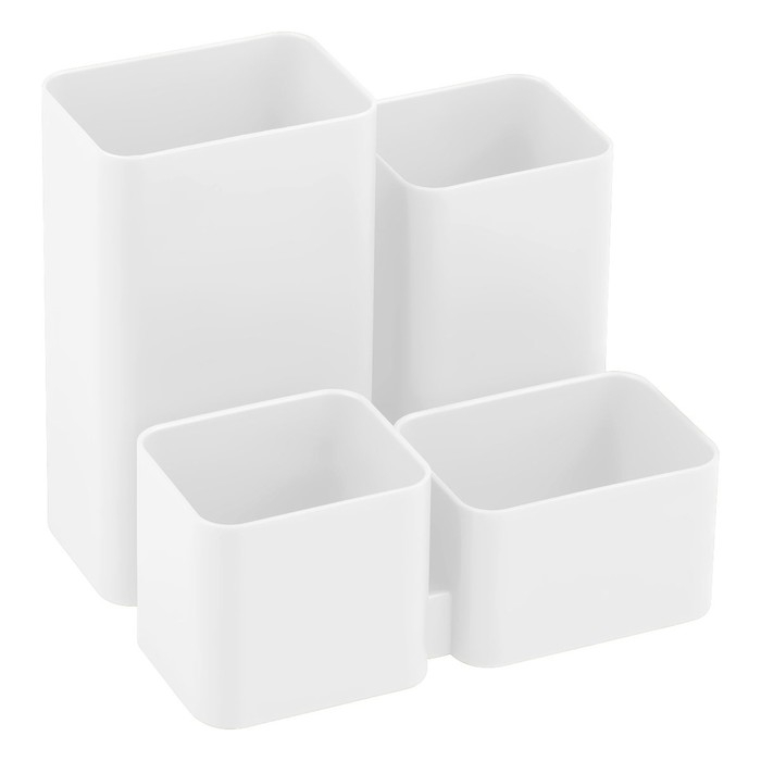 Настольная подставка предназначена для хранения канцелярских принадлежностей. Прочный корпус, оригинальный дизайн. Размер изделия - 10,2 х 10,8 х 8 см. Подставка имеет 4 отделения разных размеров. Изготовлена из качественного полистирола. Цвет изделия - белый.