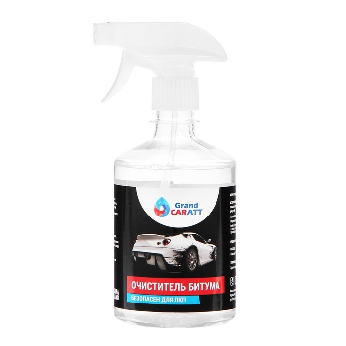 Очиститель битумных пятен Grand Caratt удаляет битумные пятна, жировые, масляные и мазутные загрязнения, смолы, нефтепродукты, следы резины, чернил, граффити, маркера и остатков жевательной резинки с различных поверхностей. Очиститель легко справляется с загрязнениями, которые не смываются при обычной мойке.