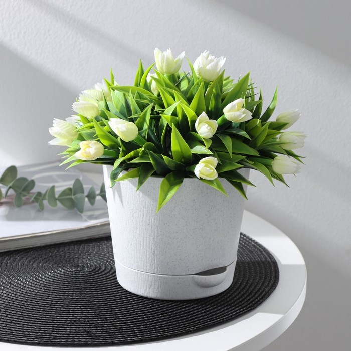 Горшок для цветов с прикорневым поливом «Альянс», 1 л, d=13 см, h=12 см, мрамор