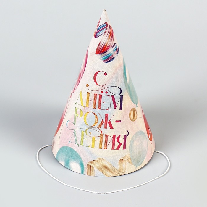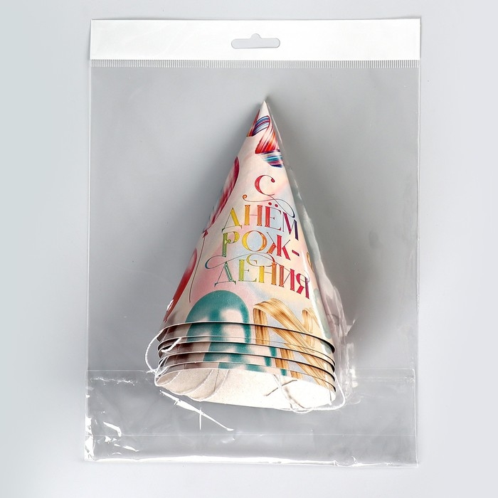 Колпак бумажный «С Днём Рождения», шары, (набор 6 шт)