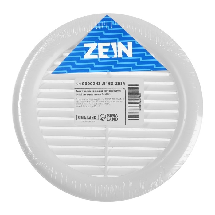 Решетка вентиляционная ZEIN Люкс Л160, d=160 мм, с сеткой, неразъемная