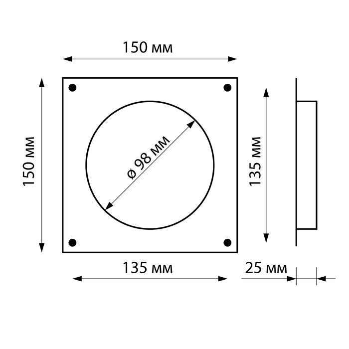 Фланец ZEIN Люкс ЛФ100, выход d=100 мм,вентиляционный, присоединительный, квадратный