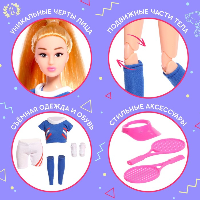 Кукла шарнирная, у неё сгибаются руки и ноги. В комплекте идут ракетки. Используйте тубус для хранения мелких детских вещей.