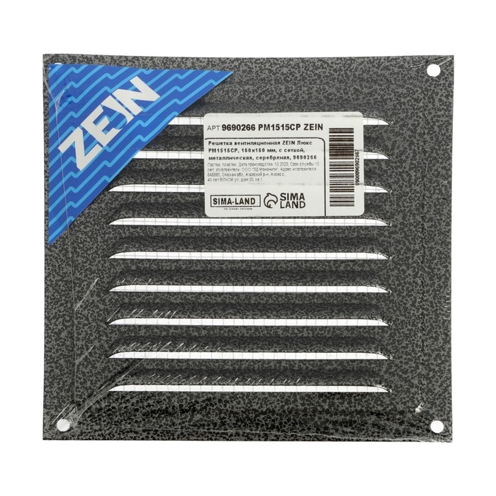 Решетка вентиляционная ZEIN Люкс РМ1515СР, 150 х 150 мм, с сеткой, металлическая, серебряная