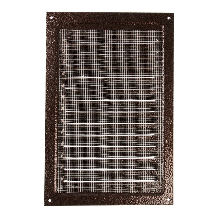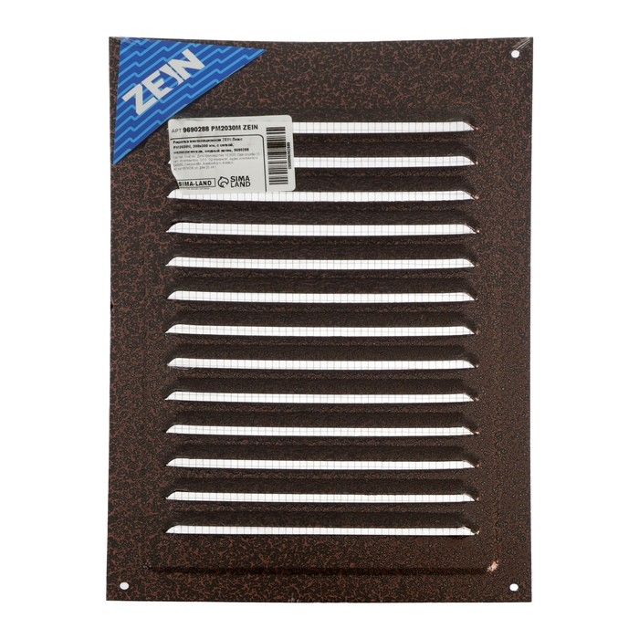 Решетка вентиляционная ZEIN Люкс РМ2030КР, 200 х 300 мм, с сеткой, металлическая, коричневая