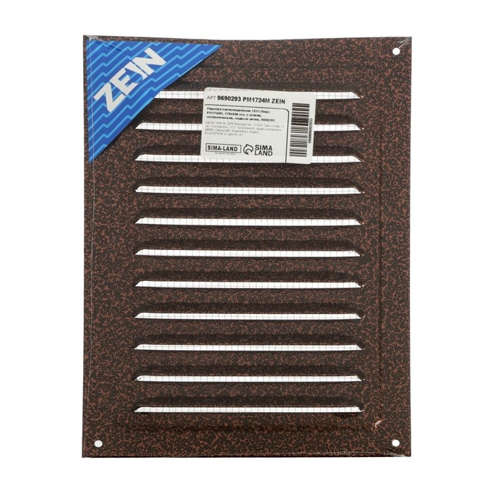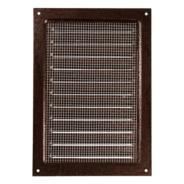Решетка вентиляционная ZEIN Люкс РМ2030КР, 200 х 300 мм, с сеткой, металлическая, коричневая