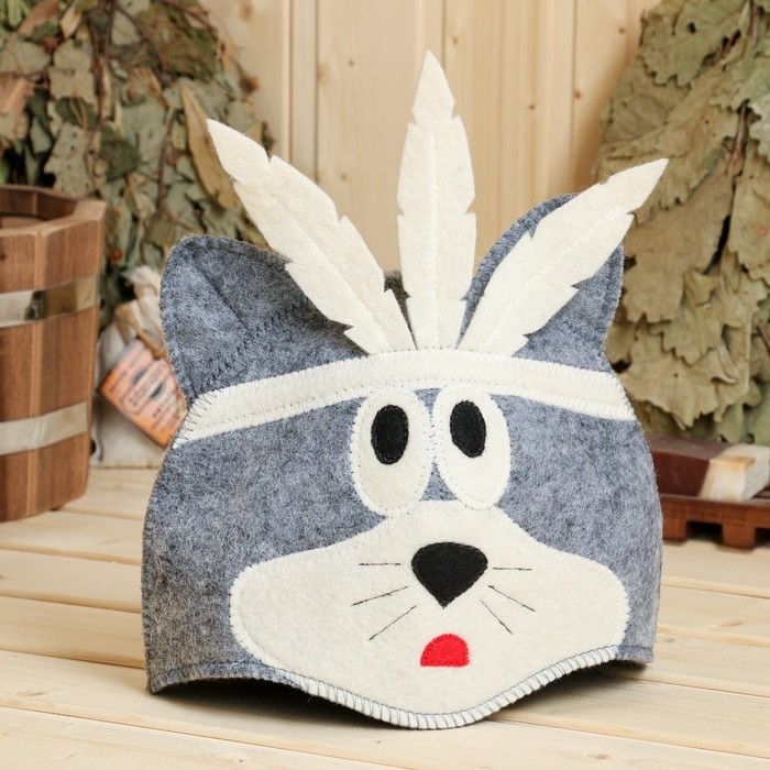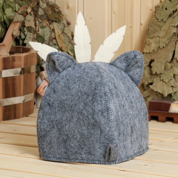 Шапка для бани "Шлем викинга" войлок, комбинированная