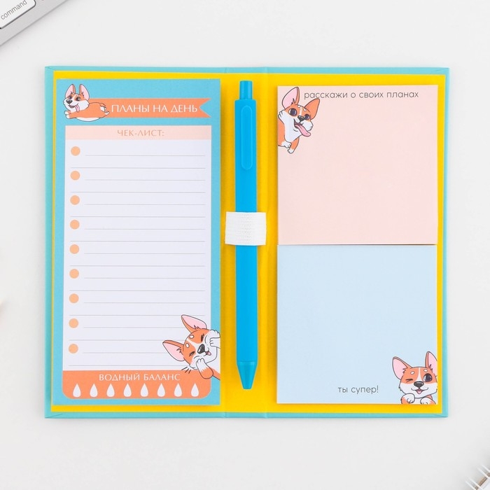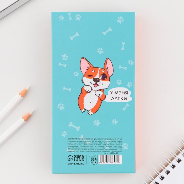 Блок для записей 3 шт. по 30 листов, стикеры, ручка шариковая синяя паста 0,7 мм «Для тех, укого лапки»