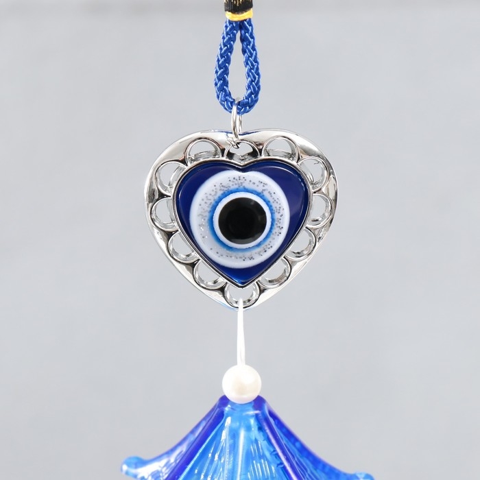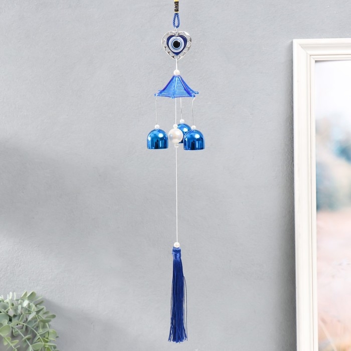 Музыка ветра металл "Сердечко" от сглаза с кисточкой 3 колокольчика 36 см