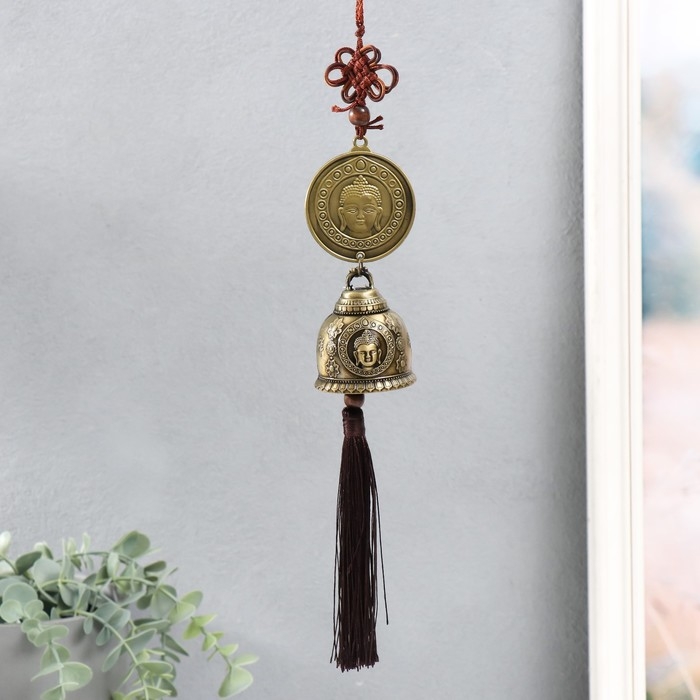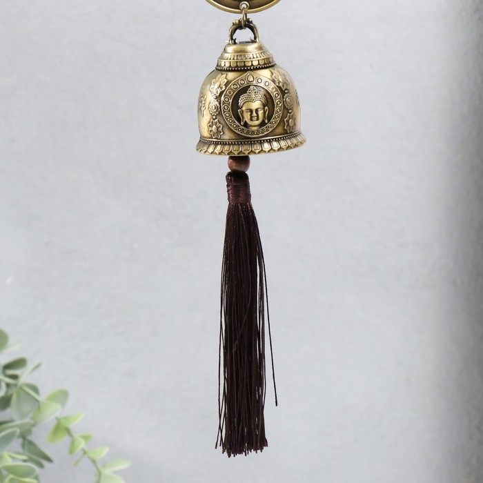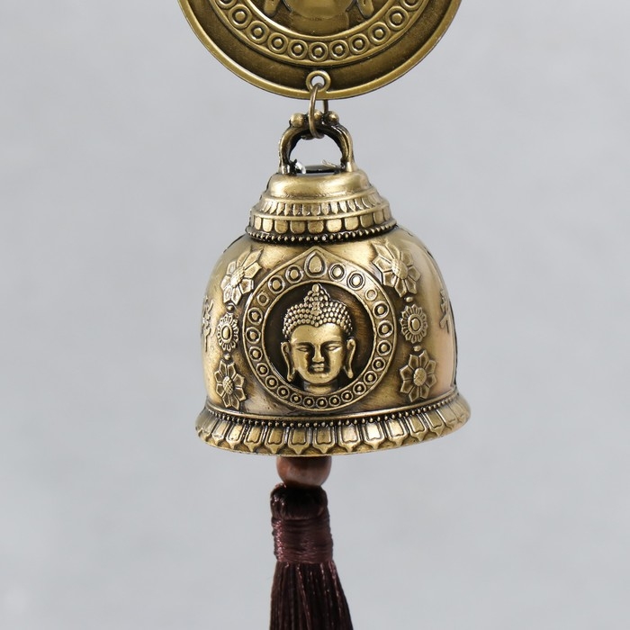 Музыка ветра металл "Монета Будды с колокольчиком" с кисточкой 5х5х30 см