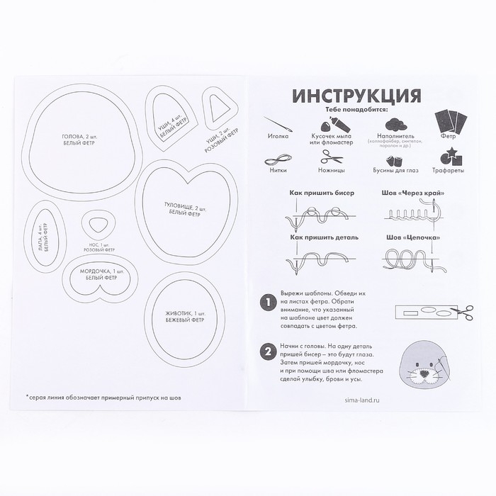 Набор для шитья. Игрушка из фетра своими руками «Белый котик»