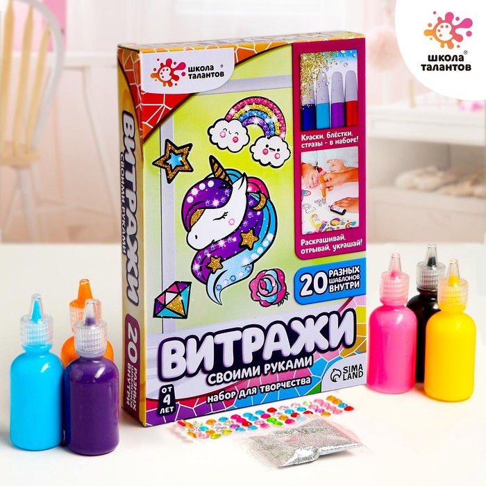 Набор для творчества «Раскрась витражики: единорог», 20 шт в наборе