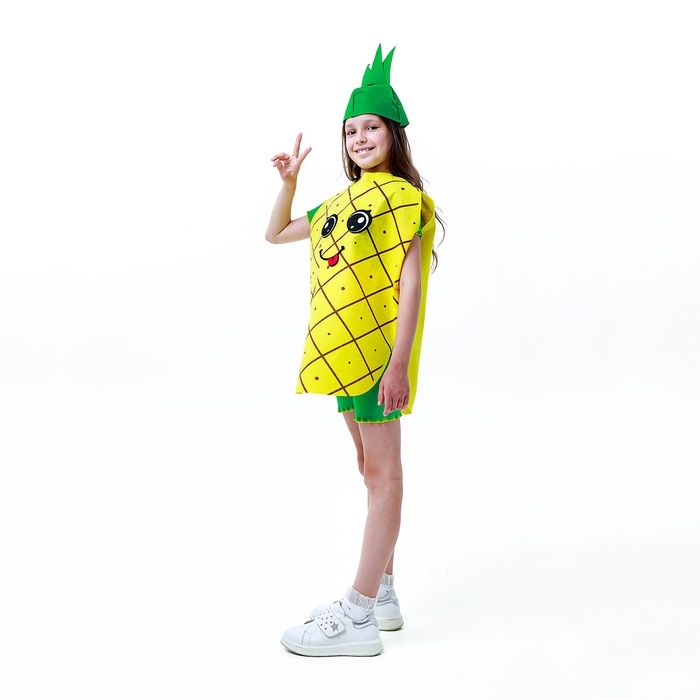 С набором «Задорный ананас» ваша малышка станет настоящей звездой на детской вечеринке и поразит всех гостей! С ним вы составите полноценный образ, ведь в комплекте есть накидка и головной убор. Создавайте яркие эмоции и воспоминания на целый год вперёд себе и ребёнку!