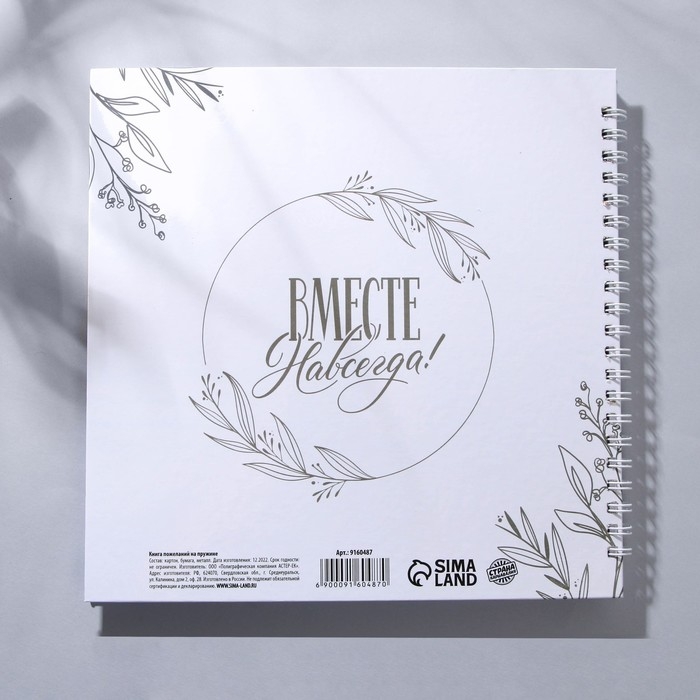 Книга пожеланий на свадьбу, на пружине, 21 х 21 см.