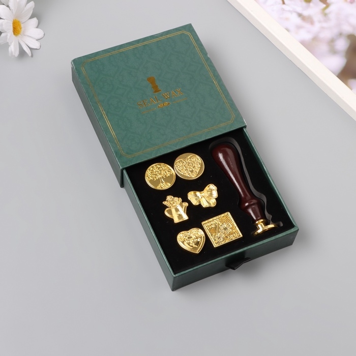 Набор печатей для сургуча с деревянной ручкой "Классика и растения"