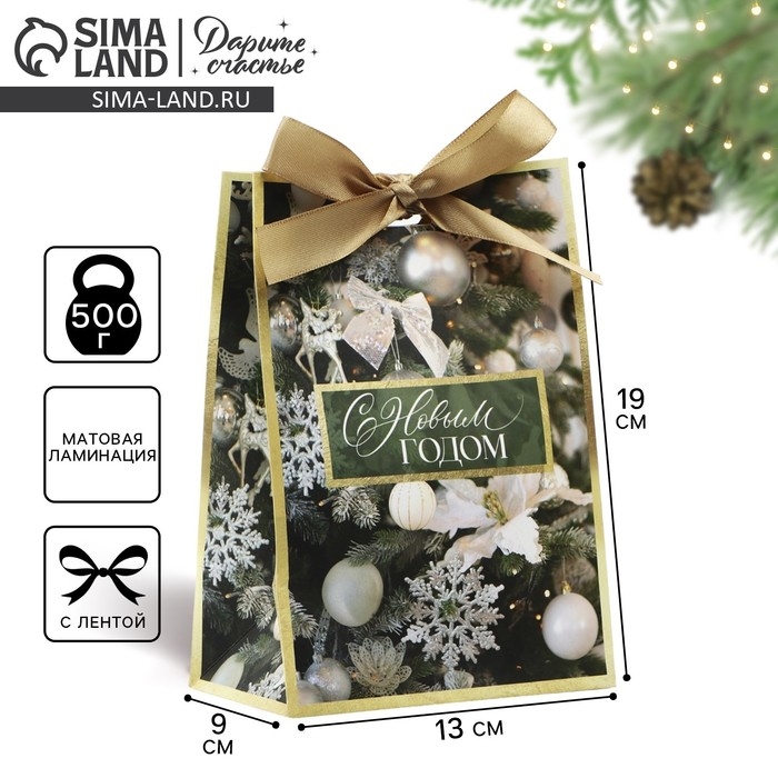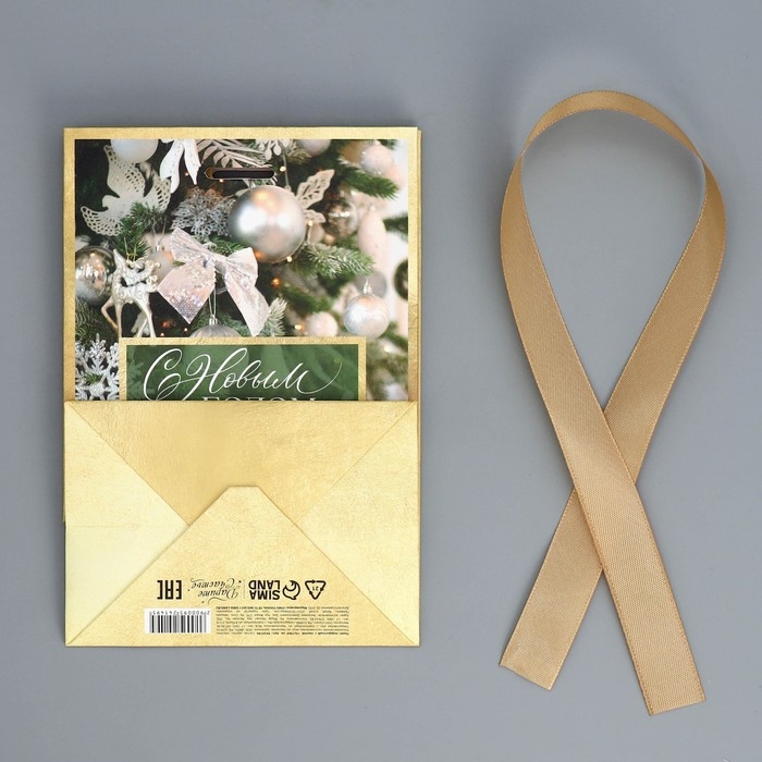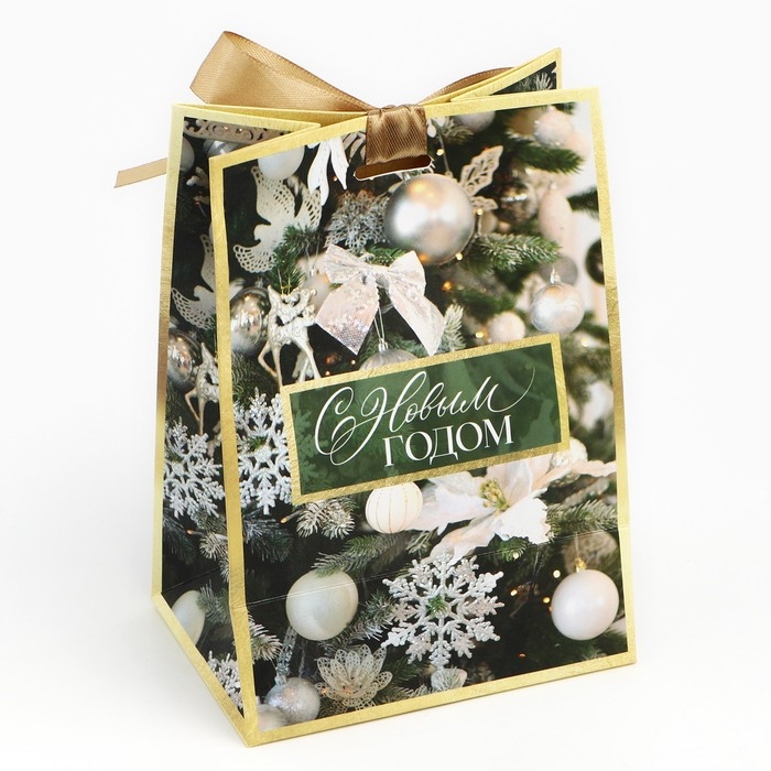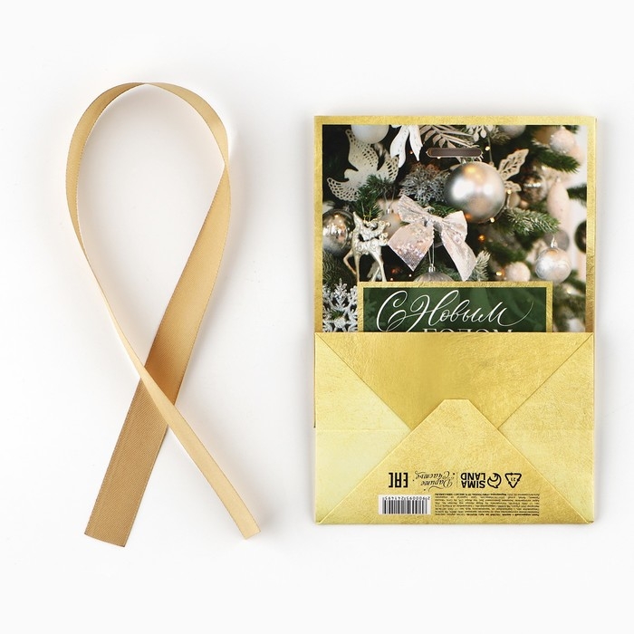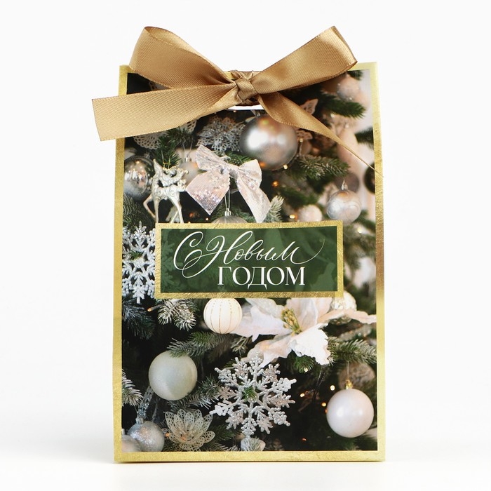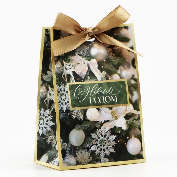 Пакет подарочный новогодний с лентой «Зима», 13 х 19 х 9 см