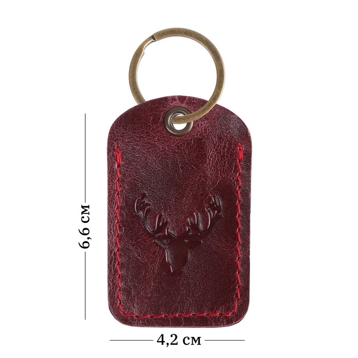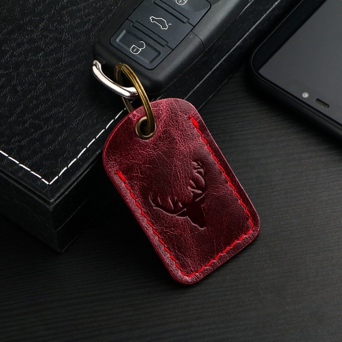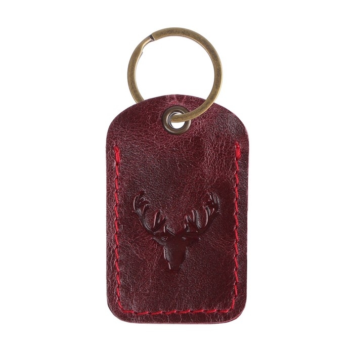 Брелок кожаный для ключа, метка, прямоугольный, натуральная кожа, бордовый, олень