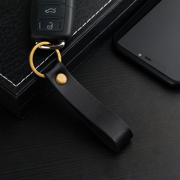 Брелок кожаный для автомобильного ключа, ремешок, натуральная кожа, черный