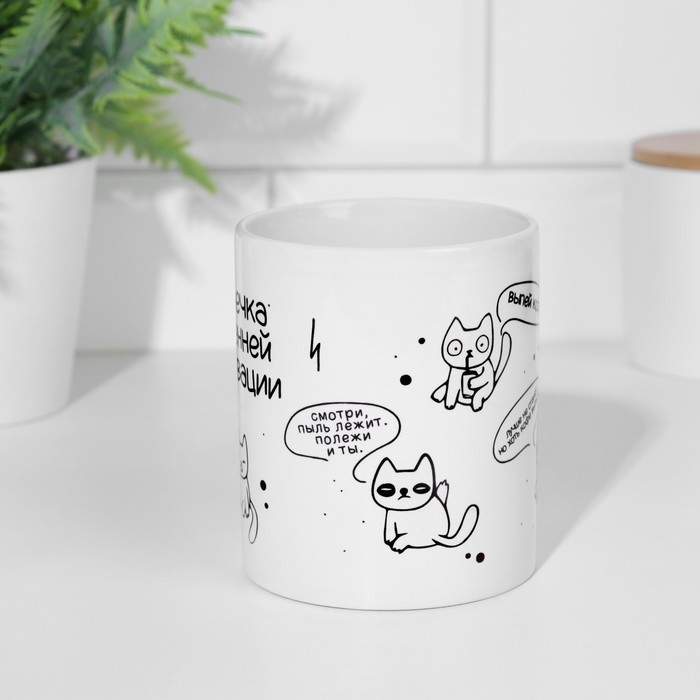 Кружка изготовлена из керамики. Рисунок нанесён методом сублимации, при котором краска проникает в верхний слой изделия, поэтому изображение получается стойким.