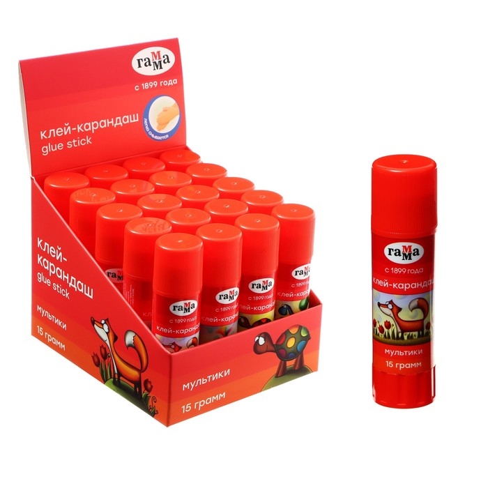Клей-карандаш ПВП ГАММА серии "Мультики" – отличный помощник на уроках труда и занятиях творчеством! Вес – 15 граммов. Клей белого цвета легко и равномерно наносится на поверхность, что позволяет экономично его расходовать. Клей быстро высыхает. Позволяет хорошо склеивать изделия из бумаги, картона, фотографии. Комфортен в использовании: не оставляет следов на одежде и легко смывается водой. Он безопасен для детей, так как состоит из натуральных ингредиентов и не содержит растворителей. Круглый корпус удобно лежит в руке. Поставляется в дисплей-боксах.