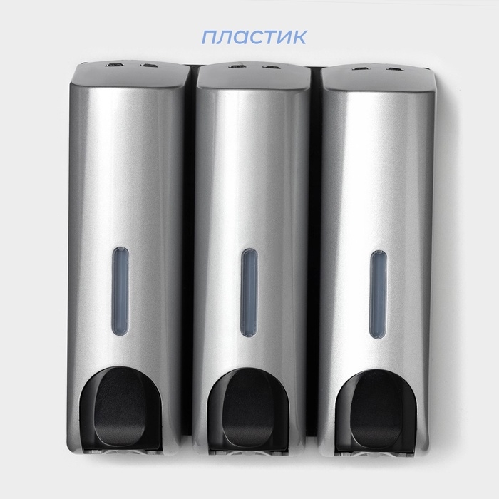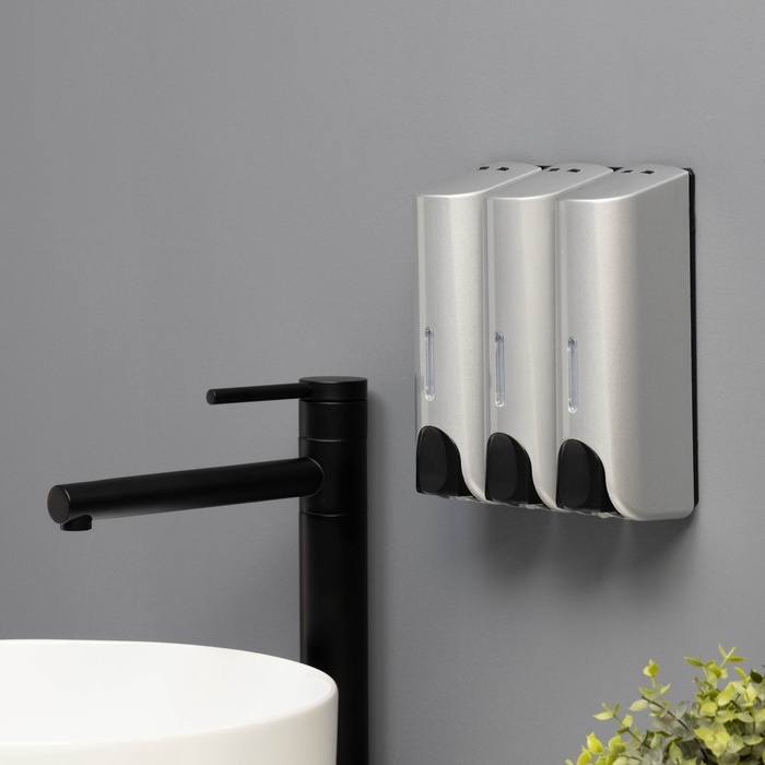 Диспенсер для мыла SAVANNA, механический, 3 отсека по 350 мл: шампунь, кондиционер, гель, серый