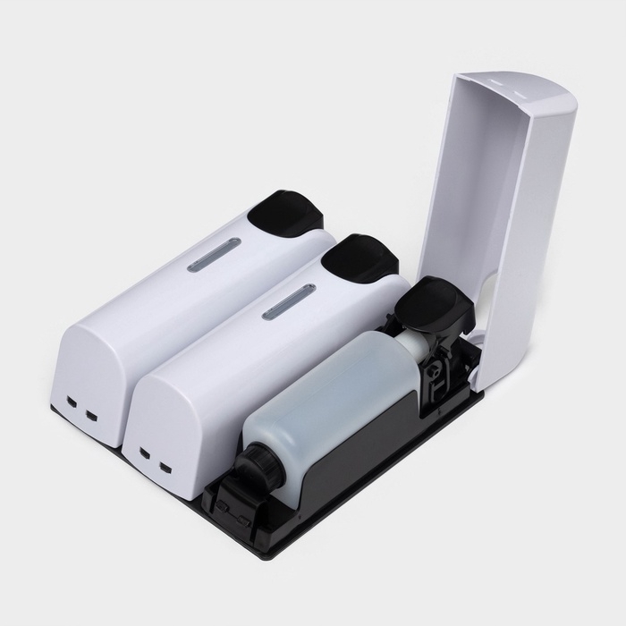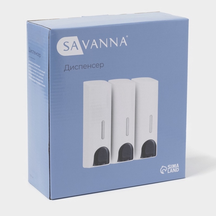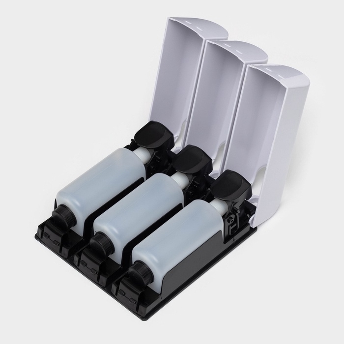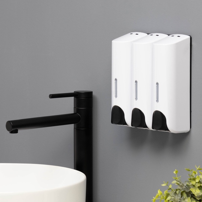 Диспенсер для мыла SAVANNA, механический, 3 отсека по 350 мл: шампунь, кондиционер, гель, белый