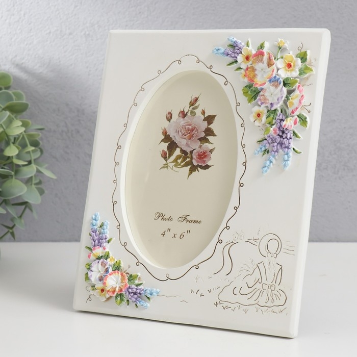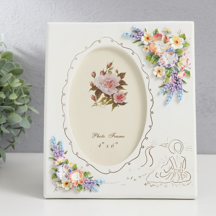 Фоторамка полистоун 10х15 см "Букет с лавандой" 19,8х16,8 см