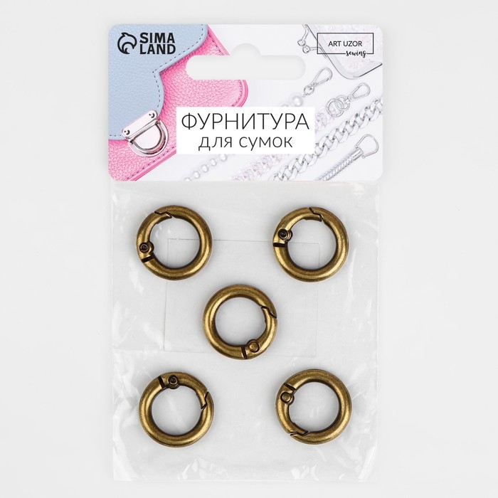 Кольцо-карабин, d = 13/20 мм, толщина - 3,5 мм, 5 шт, цвет бронзовый