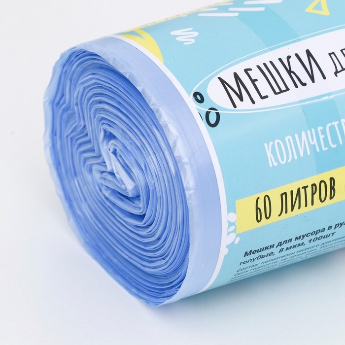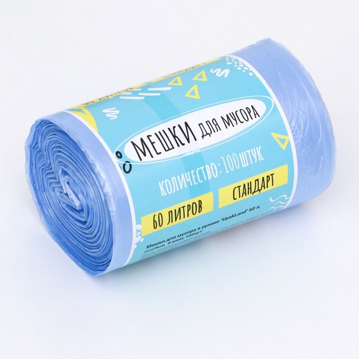 Мешки для мусора в рулоне «UPAK LAND» 60 л, голубые, ПНД, 8 мкм, 100 шт, 50 х 80 см