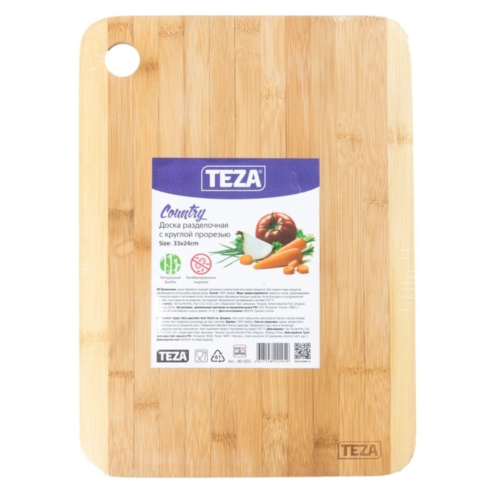 Доска разделочная с круглой прорезью Country, 33х24х1 см, бамбук