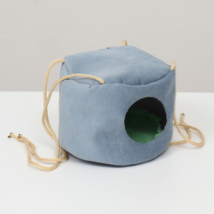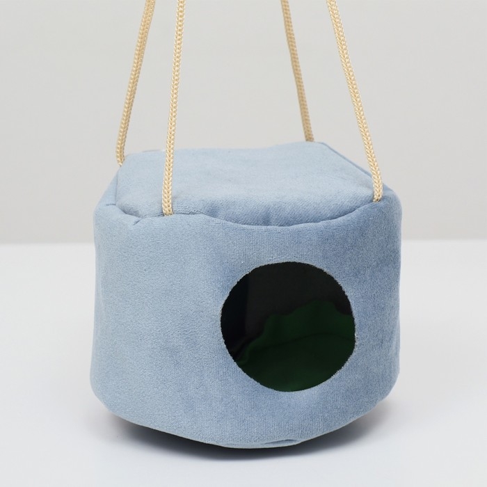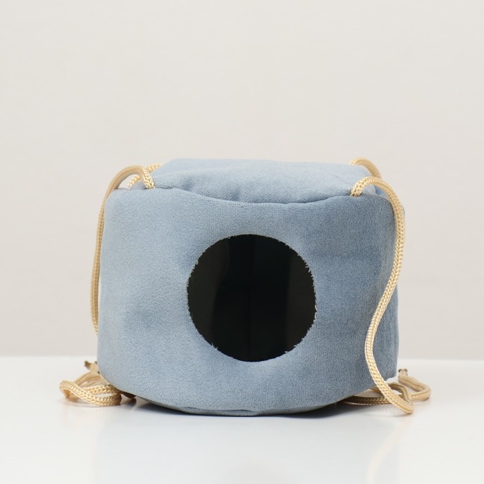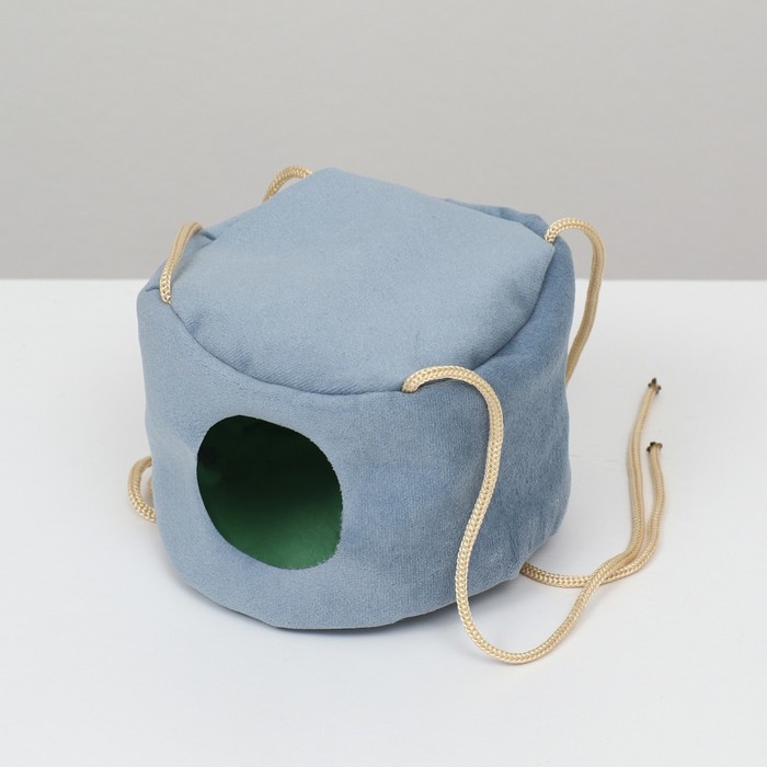Подвесной дом для грызунов круглый, мебельная ткань, флис, 15 х 10 см, голубой
