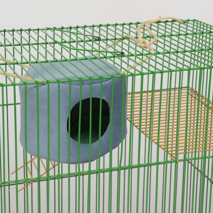 Этот домик предназначен для использования внутри клетки и выполнен из высококачественной мягкой мебельной ткани и флиса.