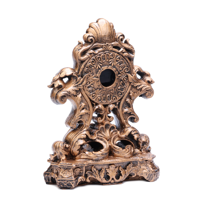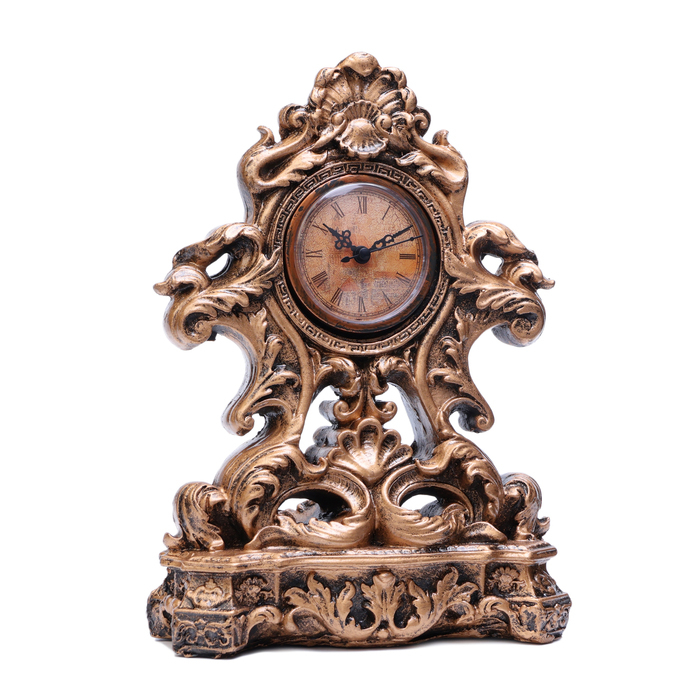 Часы настольные представлены в оригинальном дизайне, они отлично впишутся в интерьер в стиле рококо, барокко, классический. Интерьерные часы станут прекрасным декором для дома и дачи, их можно поставить как на прикроватную тумбочку в спальне, детской комнате, гостиной так и на стол или на комод в зале, холле или на кухне. Часы настольные имеют кварцевый механизм, который гарантирует высокую точность хода. Часы на не требуют частой замены батареек (тип АА), благодаря экономичному механизму. Чтобы поменять батарейку, аккуратно подденьте любым острым предметом циферблат, откройте его, внутри должна быть ячейка для батарейки.