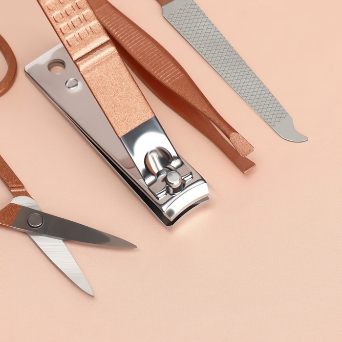 Набор маникюрный, 8 предметов, в футляре, цвет коричневый