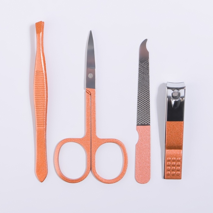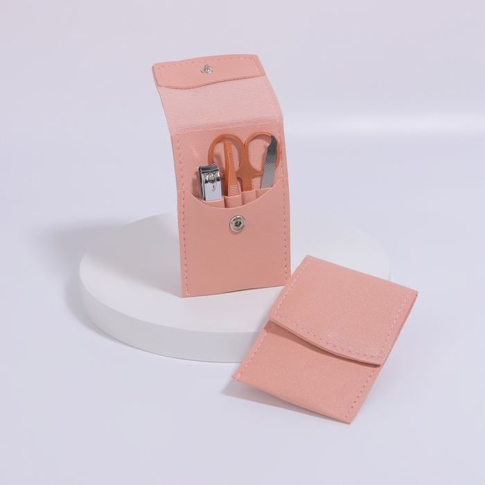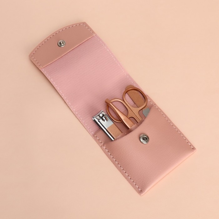 Набор маникюрный, 4 предмета, в футляре, цвет розовый