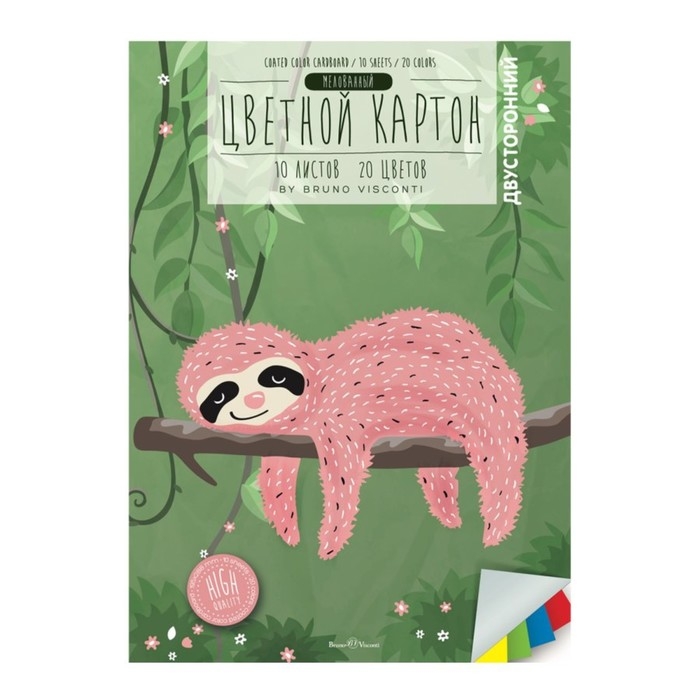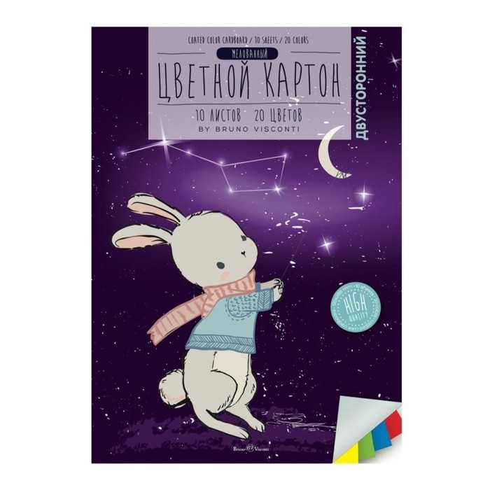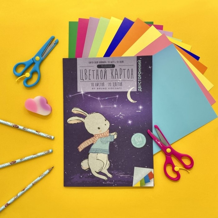 Картон цветной А4 10 листов, 20 цветов, двусторонний, мелованный, 190 г/м2, МИКС