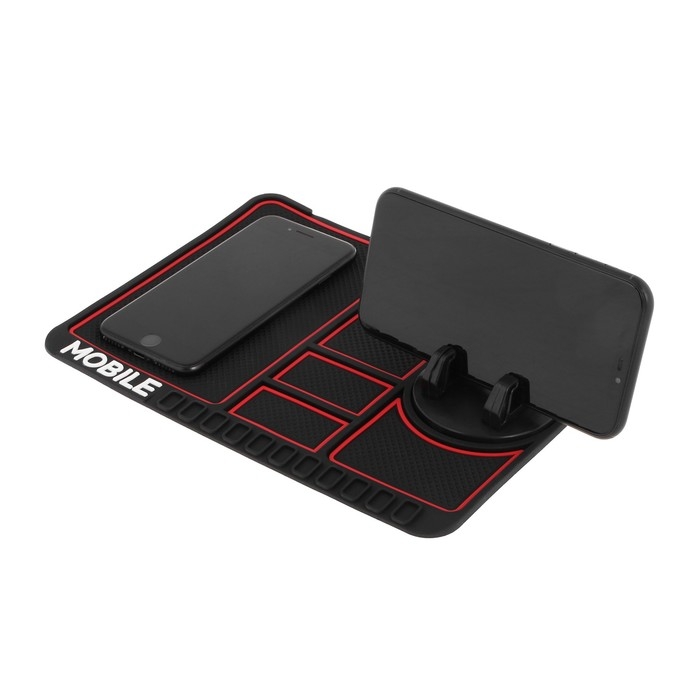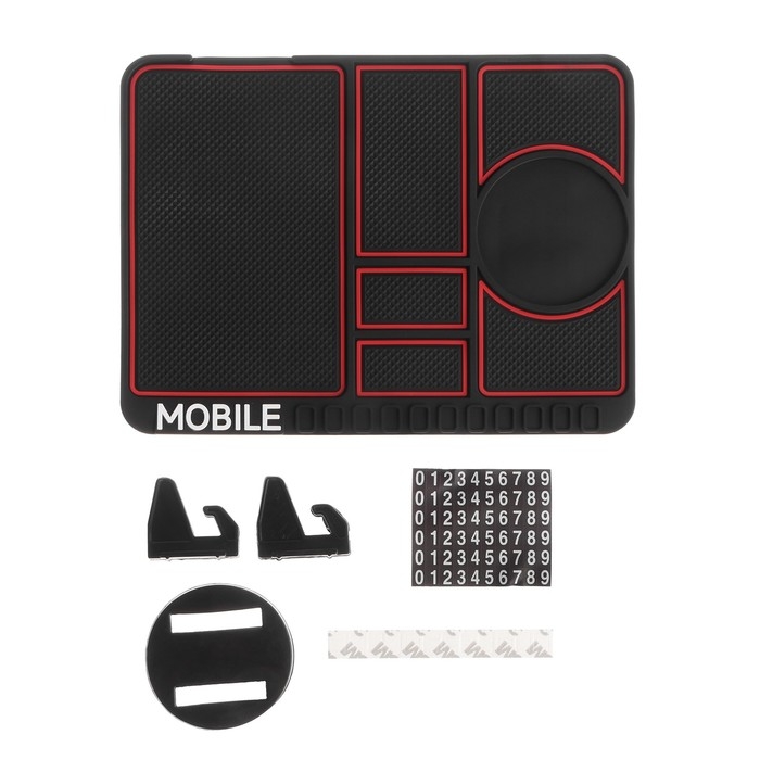 Коврик противоскользящий с подставкой под телефон и номером телефона, черный