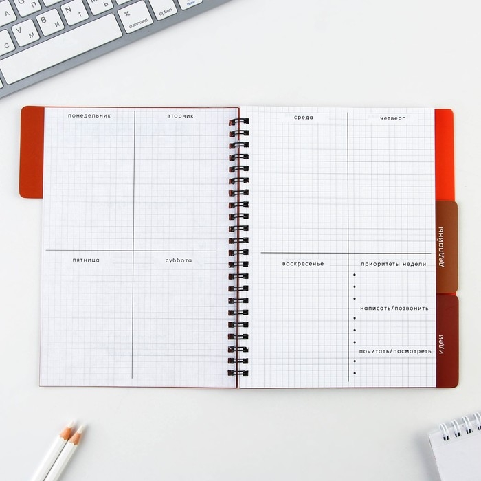 Планер с разделителями «Красный», мягкая обложка, формат А5, 50 листов