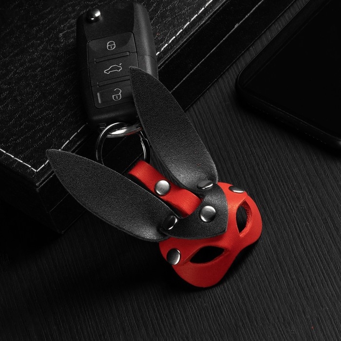 Брелок кожаный для автомобильного ключа, маска - заяц, натуральная кожа 9710409