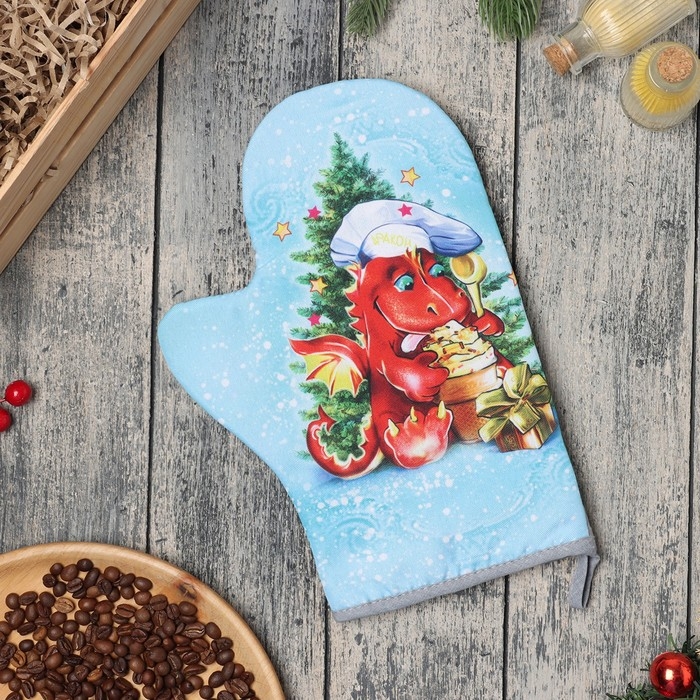 Варежка-прихватка "Дракоша" 20х28 см, 35% хл, 65% пэ, ватин 250 г/м2
