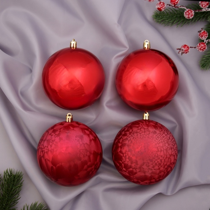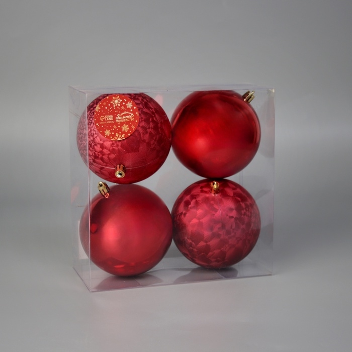 Ёлочные игрушки, шары новогодние , пластик, набор d-10 см, 4 шт "Чары волшебства" красный