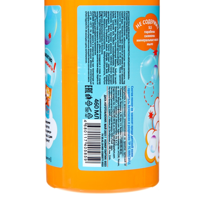 - Пена не содержит парабенов, сульфатов и красителей, что делает её безопасной для чувствительной детской кожи.