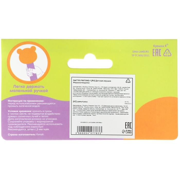 Игрушка- пищалка с первых месяцев жизни малыша станет прекрасной развивающей игрушкой вашего ребенка. Игрушку пищалку удобно держать маленькими пальчиками, что развивает мелкую моторику рук. Яркий и приятный образ поможет развить сенсорное восприятие цвета, формы и фактуры. Мягкий звук при сдавливании пищалки активизирует слуховые анализаторы и способствует концентрации внимания.