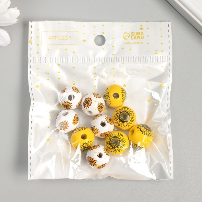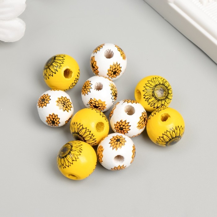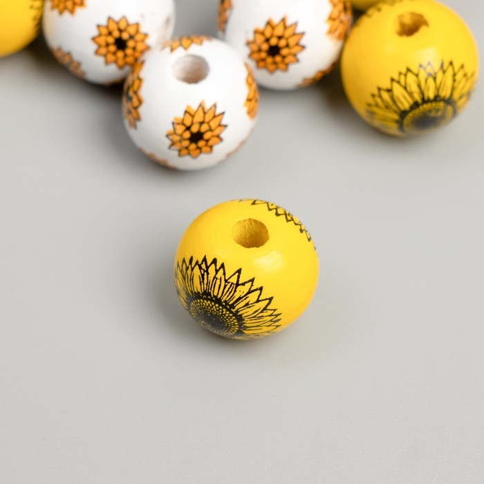 Бусина дерево для творчества "Круглая. Цветы" d=1,6 см набор 10 шт