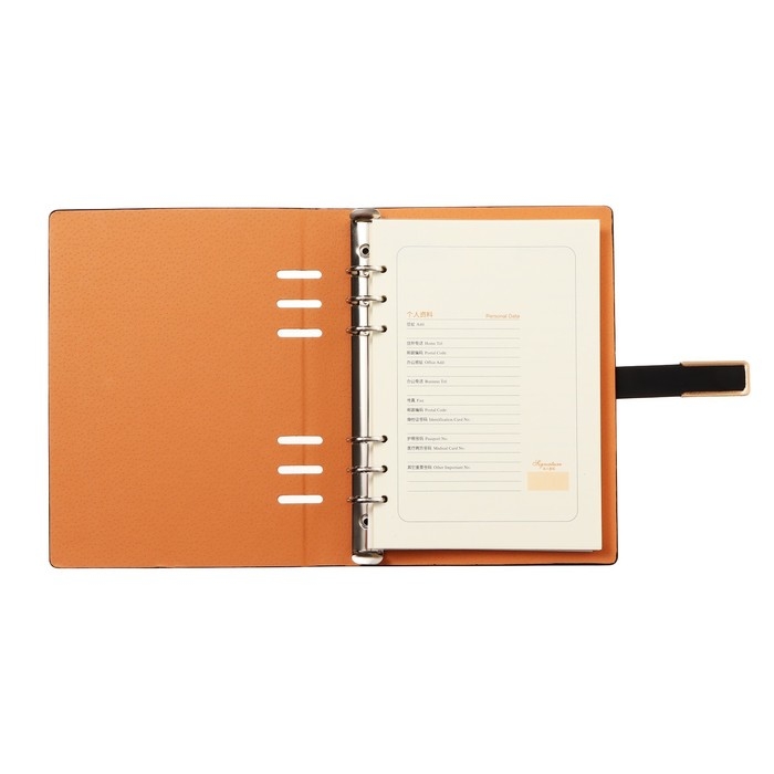 Органайзер на кольцах, формат А5, 90 листов, линия, с хлястиком, обложка кожзам МИКС